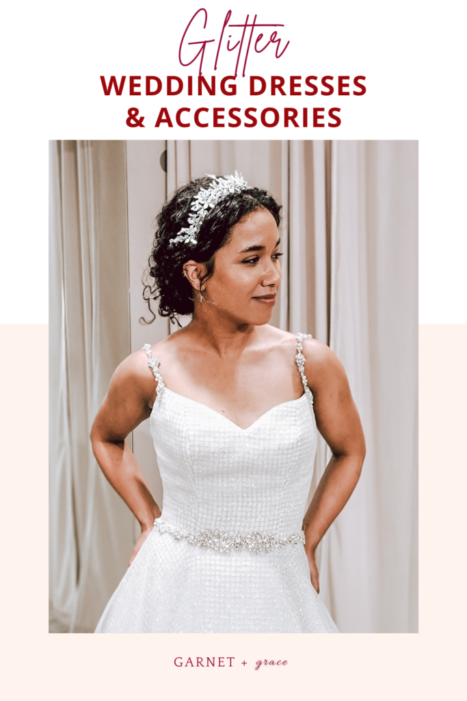 If you loved these options, or if you’re looking for something else with a little glitter and sparkle, come to GARNET + grace Bridal Boutique and save BIG on glitter wedding dresses and accessories. Select bridal dresses with glitter are priced just $1299, and if you say YES to your wedding dress with us, you can get a belt or headpiece for 20% off! Book online or give our bridal stores a call today to create your magical, sparkly moment.